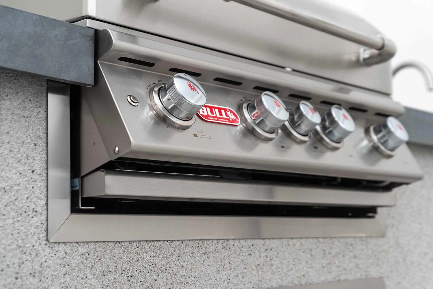 Sobald die Aussparungen für Ihren BULL Bison, Angus und Lonestar Einbaugrill fertiggestellt sind, können direkt die Edelstahlleisten angebracht werden um unschöne Kanten des Materials Ihres Sockels zu verdecken. Die Blende wird dazu nur auf den Ausschnitt aufgesteckt.