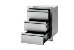Auch wenn der Unterschrank bei einem Einbaugrill natürlich fehlt, wurde nicht an unseren Features gespart. Die Fettschublade aus Edelstahl wurde so verlegt, dass Sie nach vorne herausgezogen werden kann.