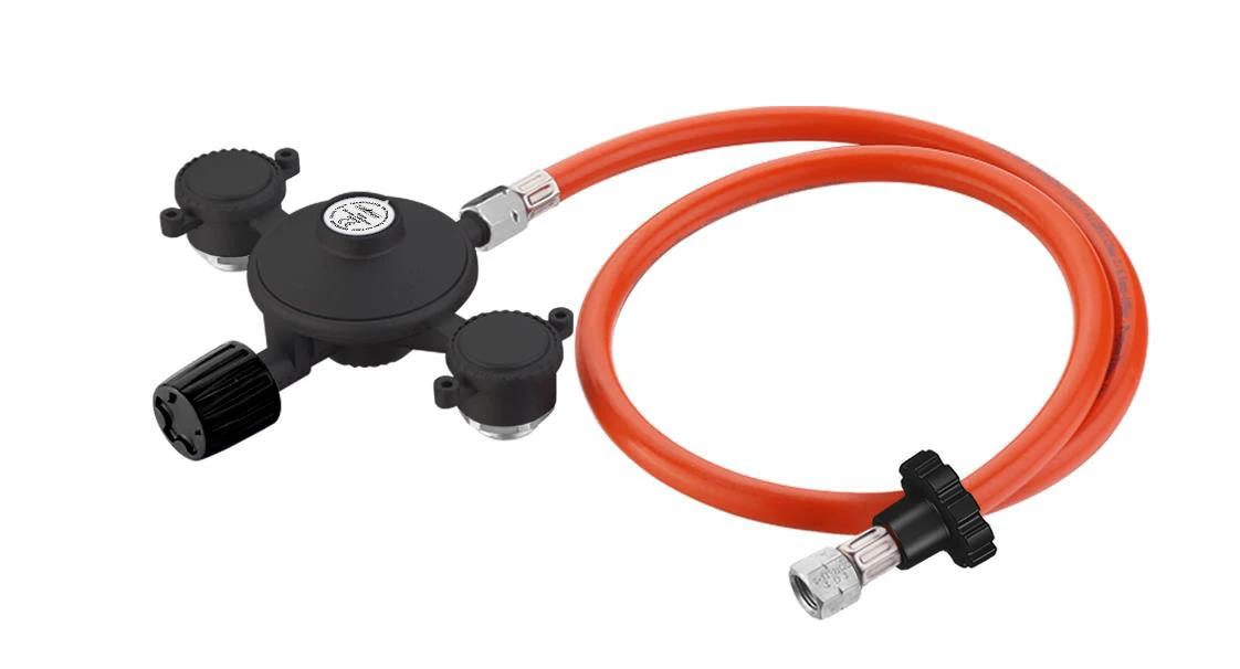 Der Kombi-Druckregler wird einfach mit dem Gasschlauch an den Gasanschluss des Grills oder Gaskochers angeschlossen. Im Set enthalten ist direkt ein passender Gasschlauch mit 1/4″ Linksgewinde zum Anschluss an herkömmliche 50 mbar Gasgeräte die üblicherweise mit einer Gasflasche betrieben werden. Achten Sie beim Anschluss darauf, dass die Gasregler des Geräts geschlossen sind.