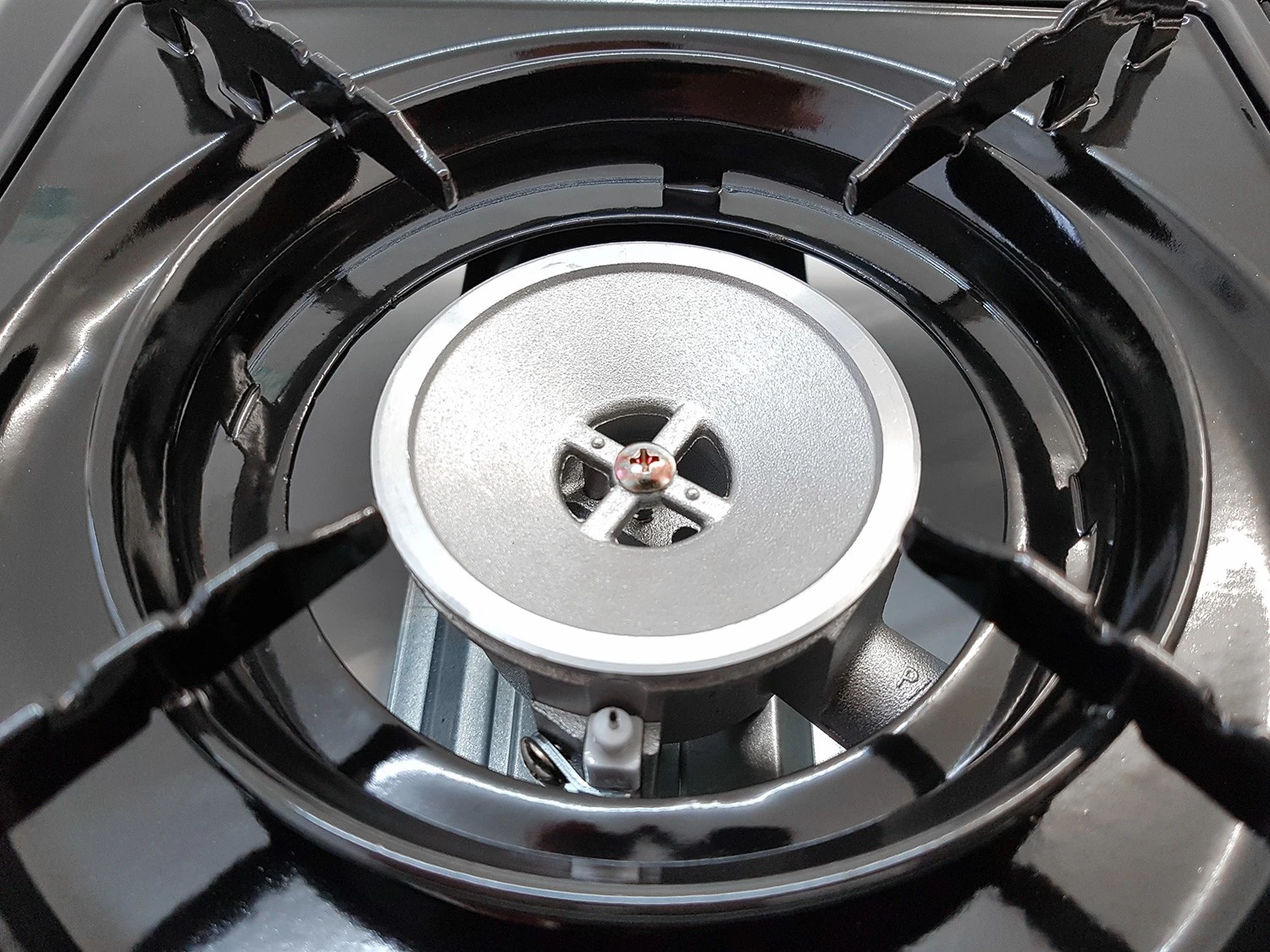 Die Zündung der Flamme erfolgt durch eine Piezo-Elektrode, deren Betätigung im Gasregulier-Knopf integriert ist. Gleichzeitig können Sie mit diesem Drehknopf die Gasmenge und damit die Flammenstärke stufenlos regulieren.