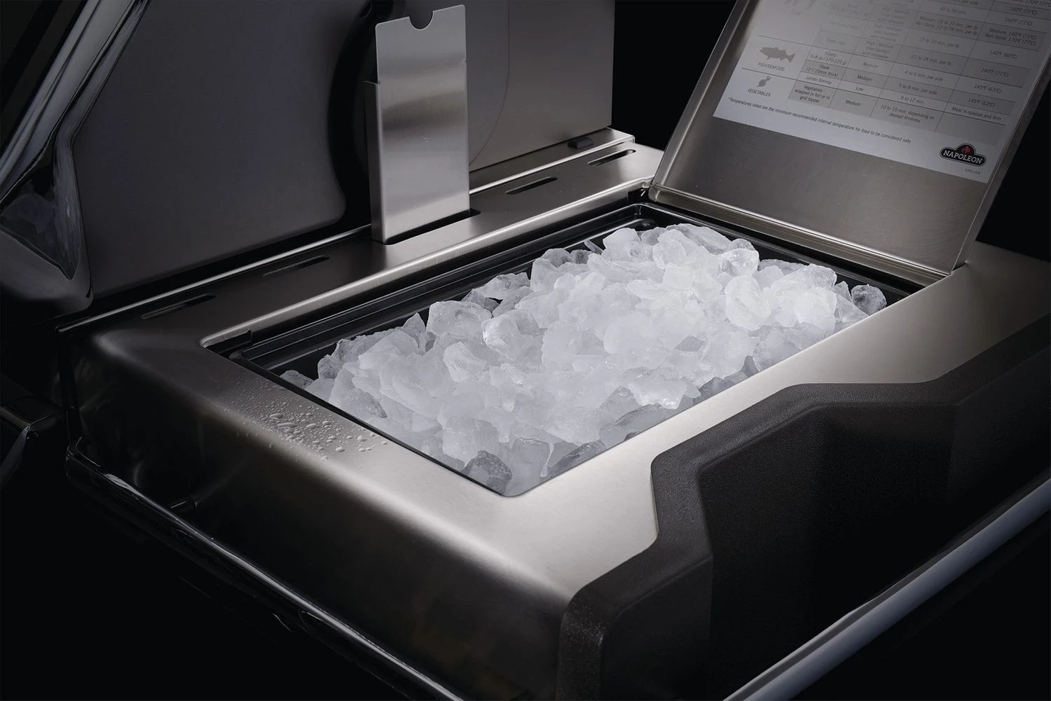 Der Pro 665 schaltet automatisch die Drehregler – Beleuchtung und Bodenbeleuchtung an, sobald Sie sich dem Gerät nähern. Das wird auf jeden Fall für bewundernde Blicke sorgen. Möglich ist dies durch einen eingebauten Bewegungsmelder. Das auf den Boden projizierte Napoleon Logo ist zusätzlich ein schönes Highlight dieses absoluten Luxus Grills.