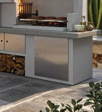 Kombinieren Sie die Tür zu Palazzetti Gartenküchen und den dazugehörigen Modulen wie Gaskochstelle, Spüle oder Arbeitsfläche. Neben einer Tür in Edelstahl sind auch Modelle in Pfirsich oder Anthrazit erhältlich, passend zu den roten oder grauen Arbeitsplatten der Gartenküchen von Palazzetti.