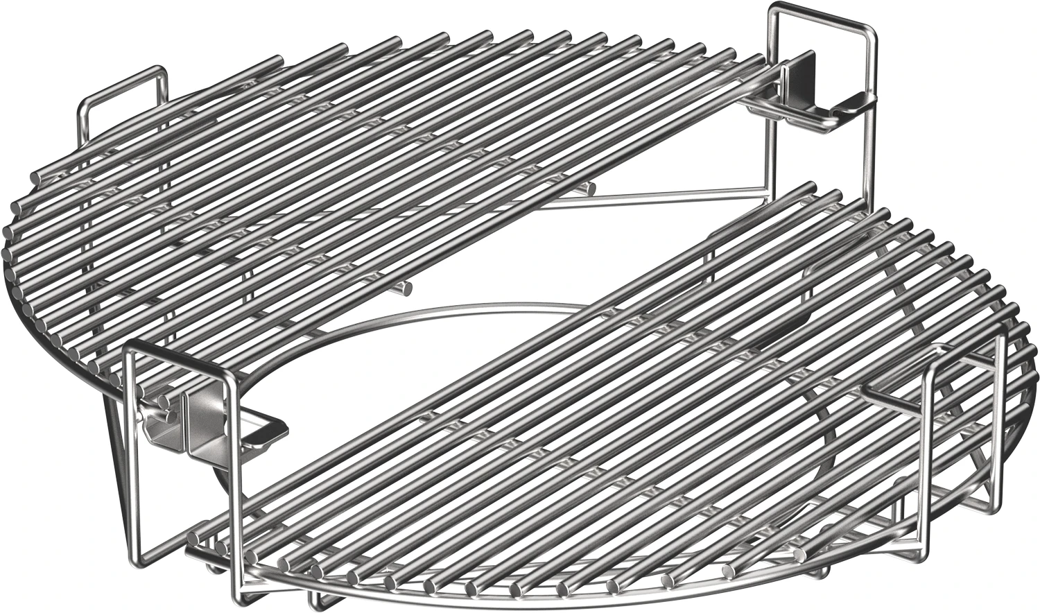 Das Rostsystem besteht aus einem Halter, 2 halben Edelstahlgrillrosten und 2 halben Hitzedeflektoren aus Keramik (Plate Setter). Die geteilten Deflektorsteine ermöglichen das indirekte Grillen auf gesamter oder halber Grillfläche. Durch ihre spezielle Beschichtung sind sie beiden Deflektorsteine besonders pflegeleicht und verschmutzen nicht so leicht.